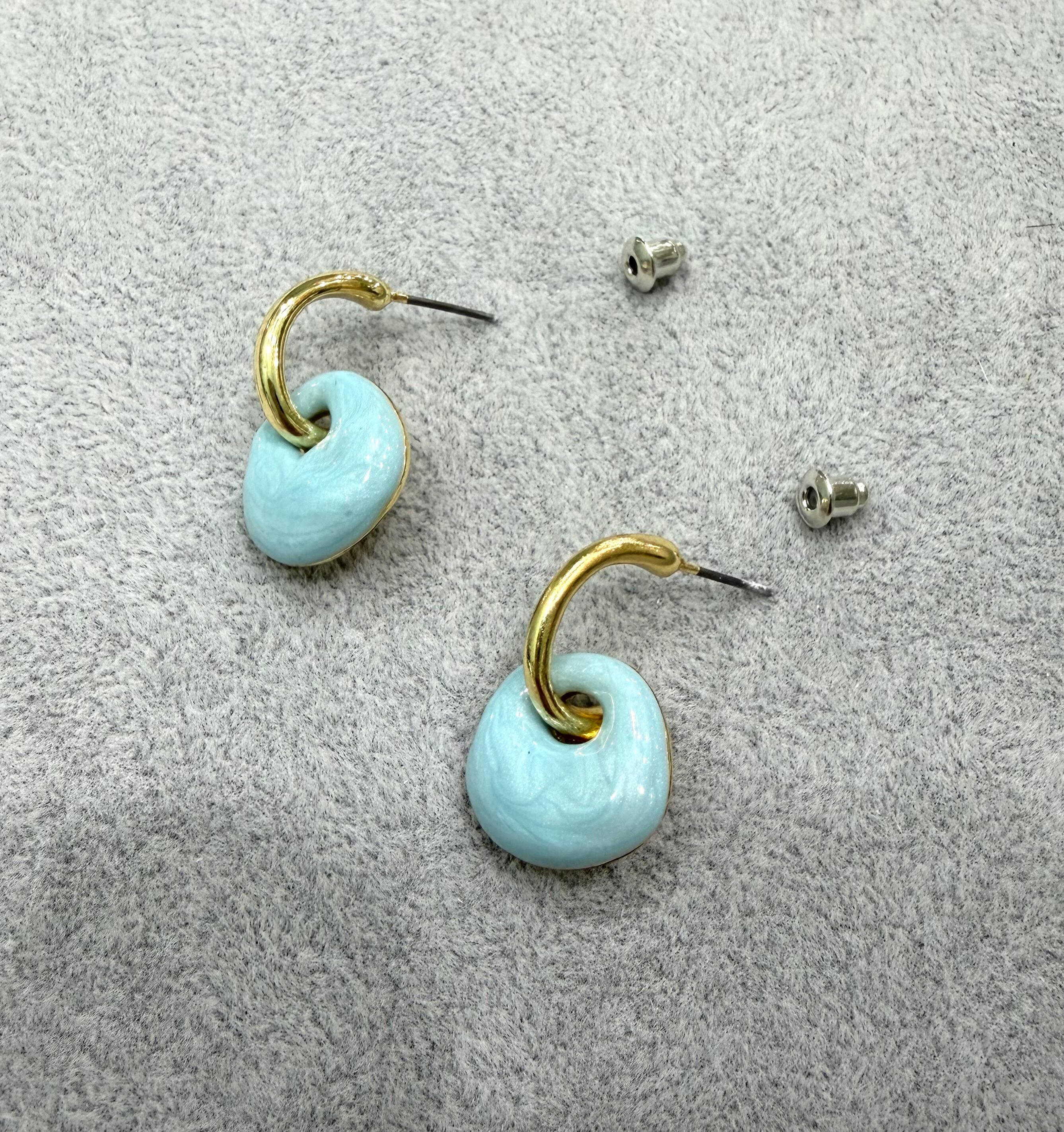 淡いブルーのセラミックのパーツがついたゴールドフープ