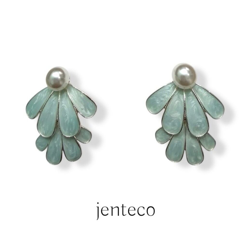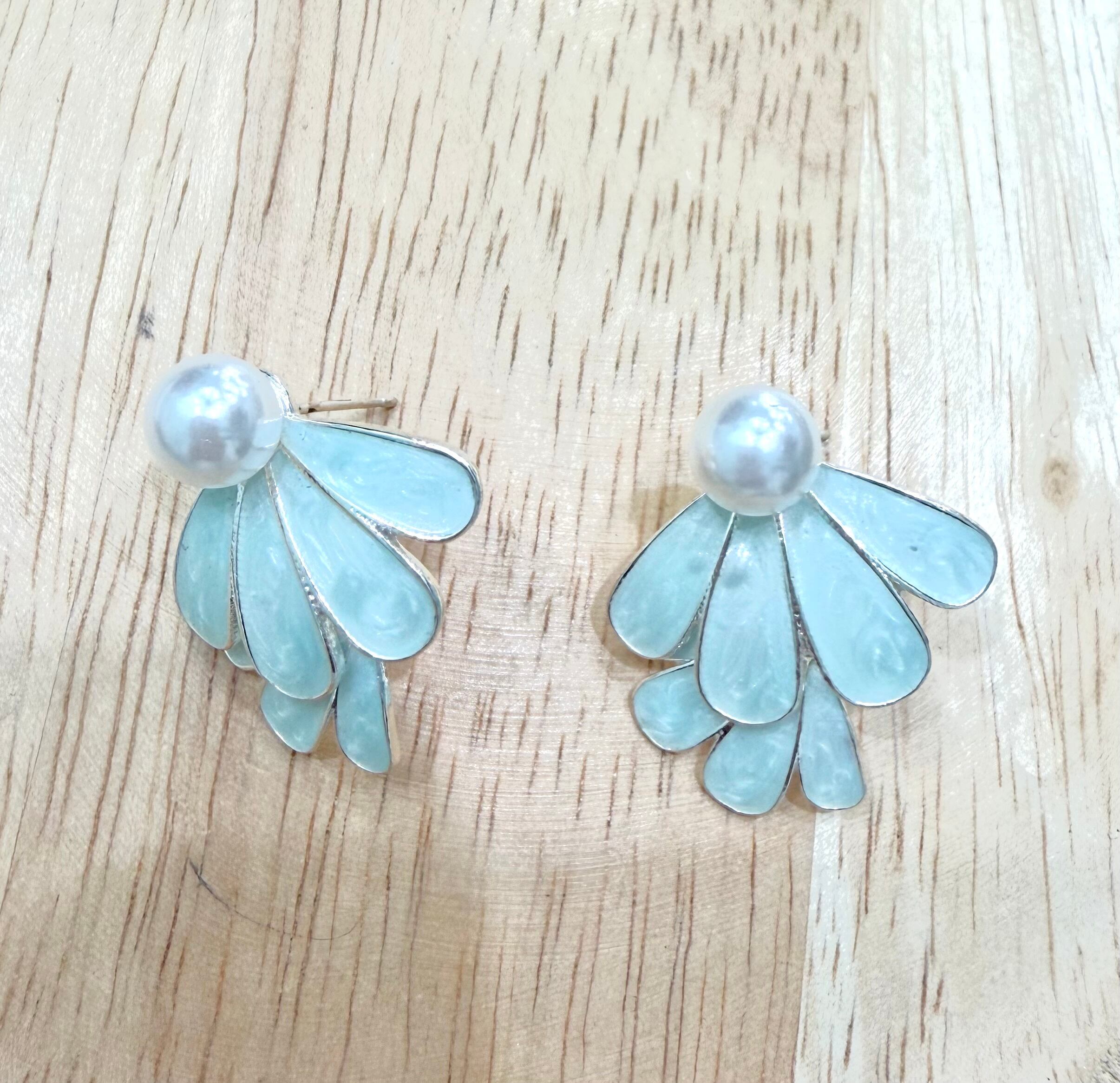 淡いライトブルーの花びらと一粒パールが可愛いデザインのピアス