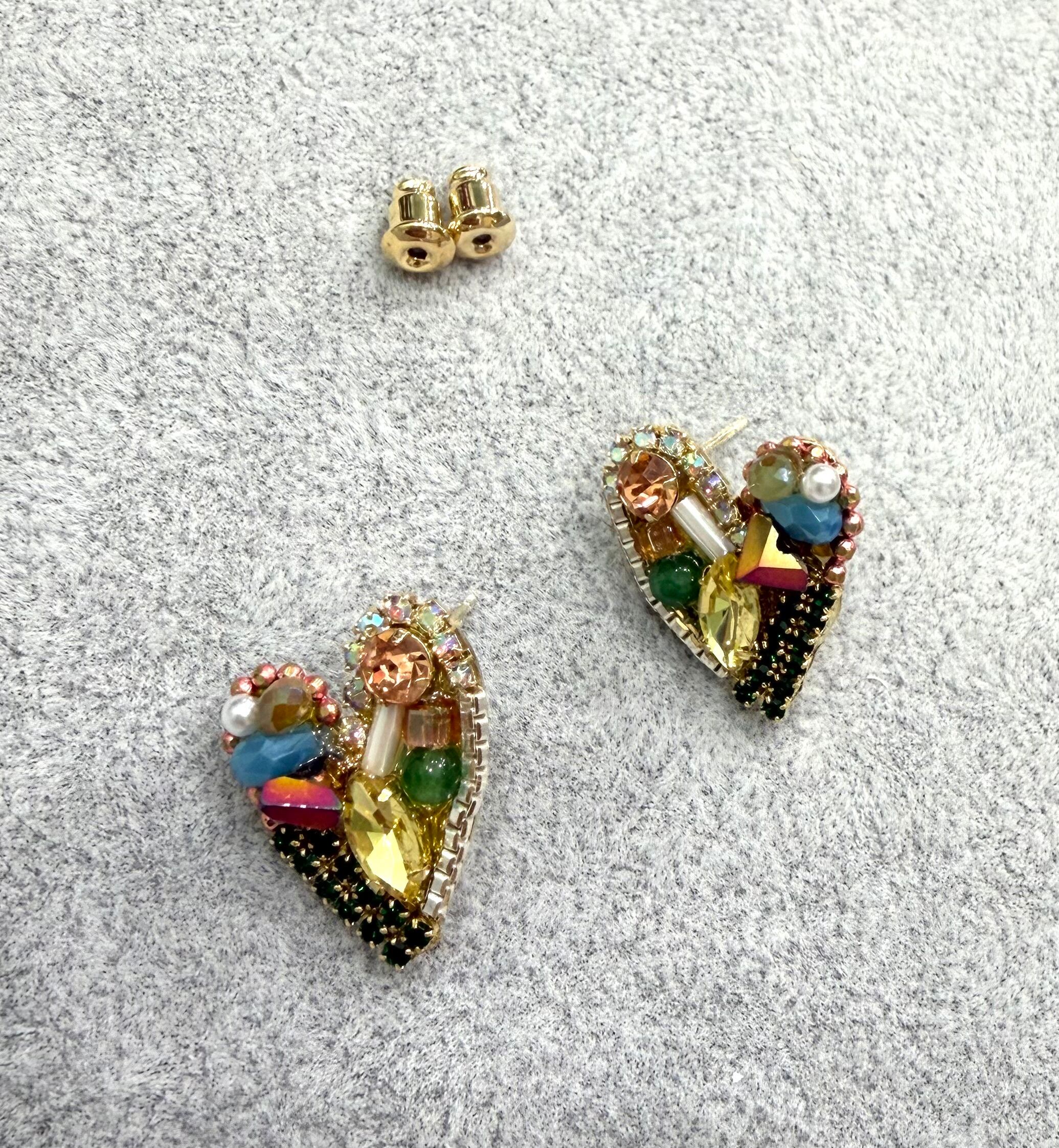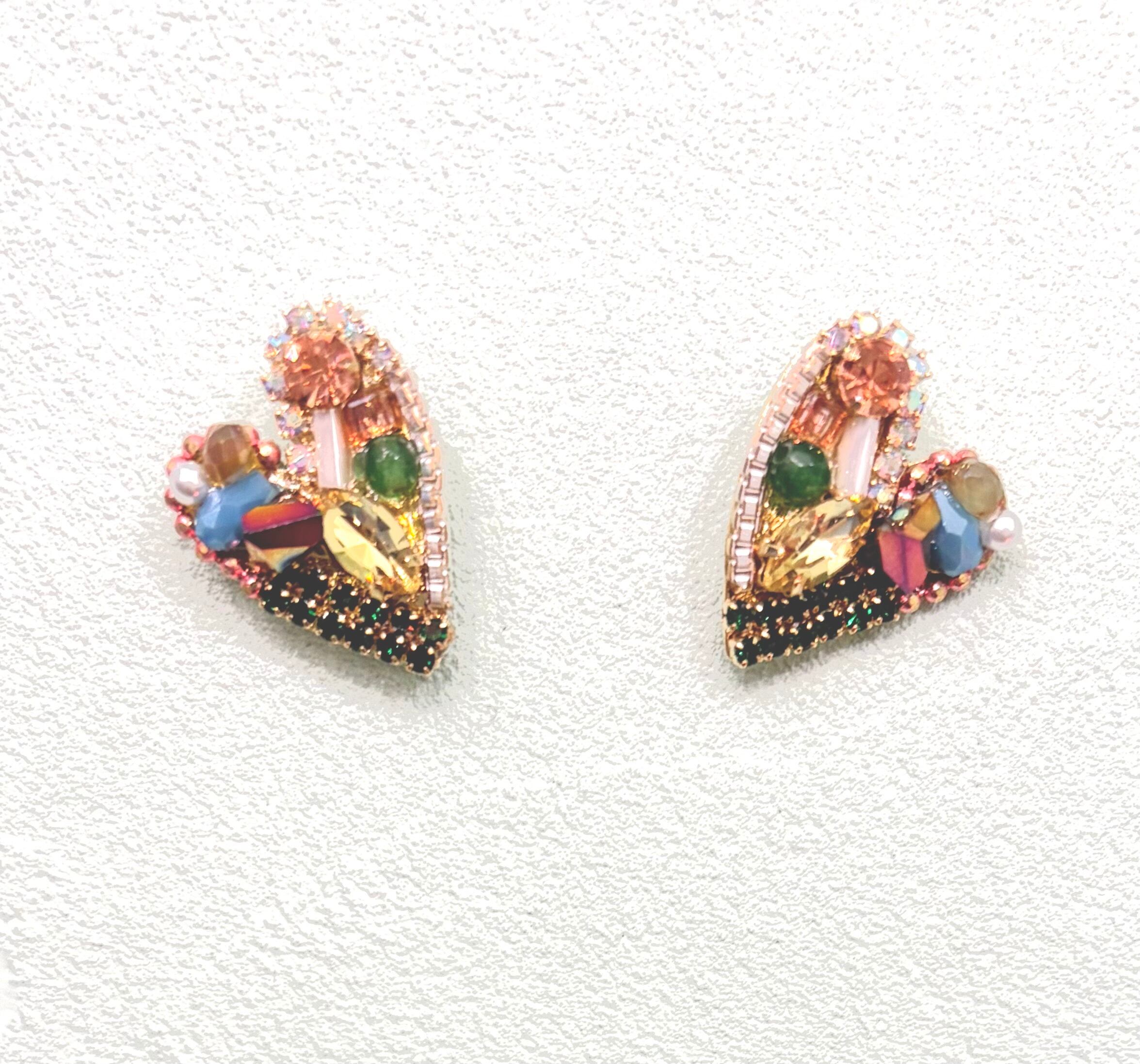 大人気ハートラインストーンピアスの、こちらはイエロー系です