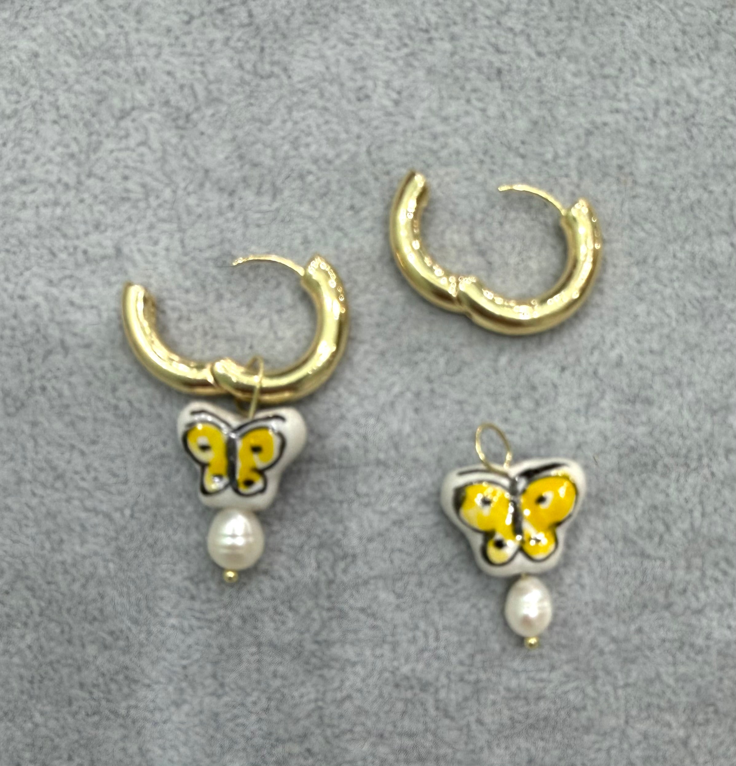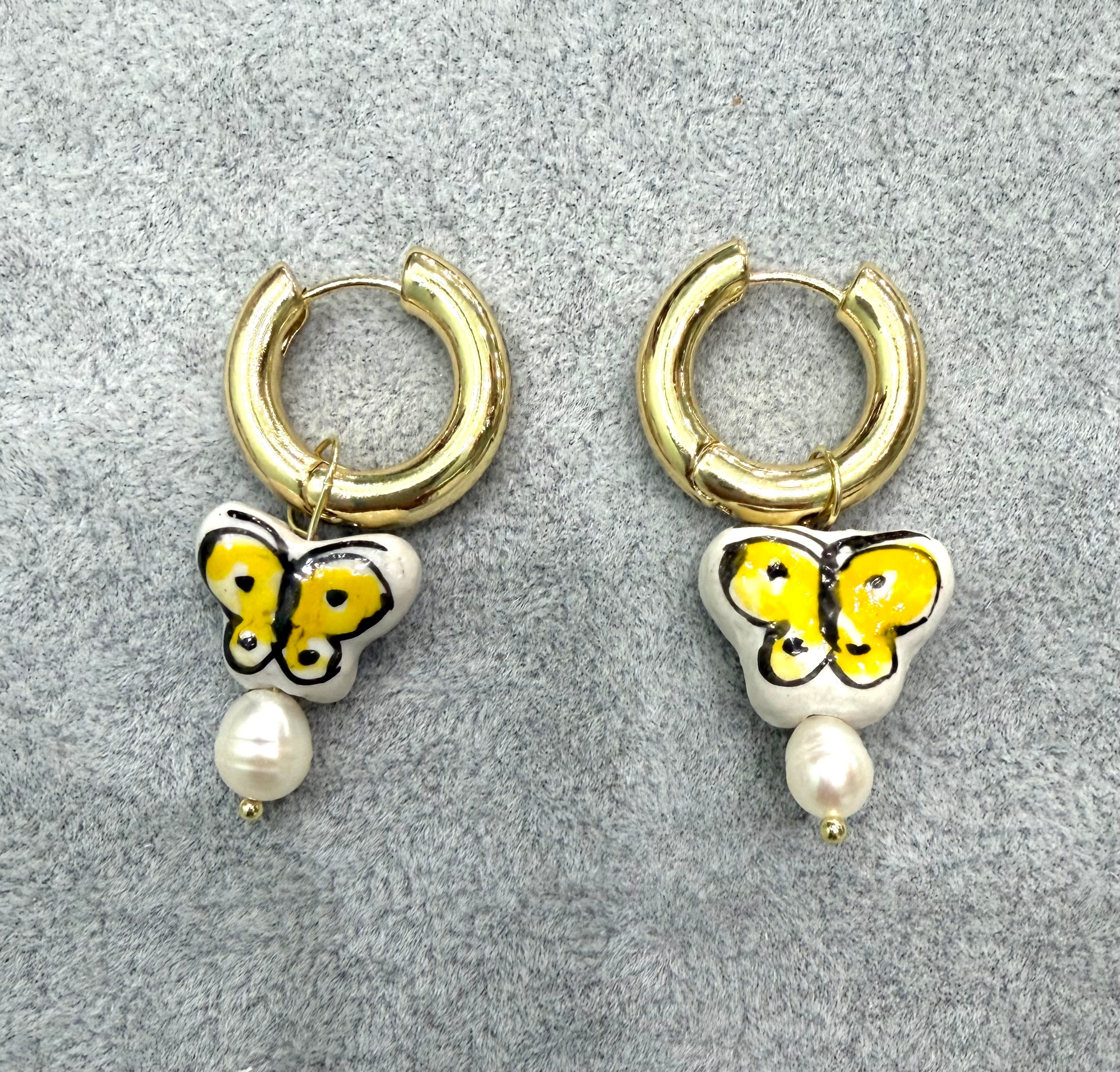 陶器製のバタフライが揺れる可愛いピアス