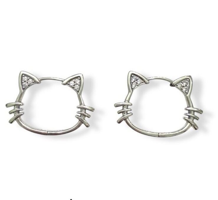 cat フープピアス 猫の形のフープピアス キラキラした耳もポイントです silver925対応 2601-032