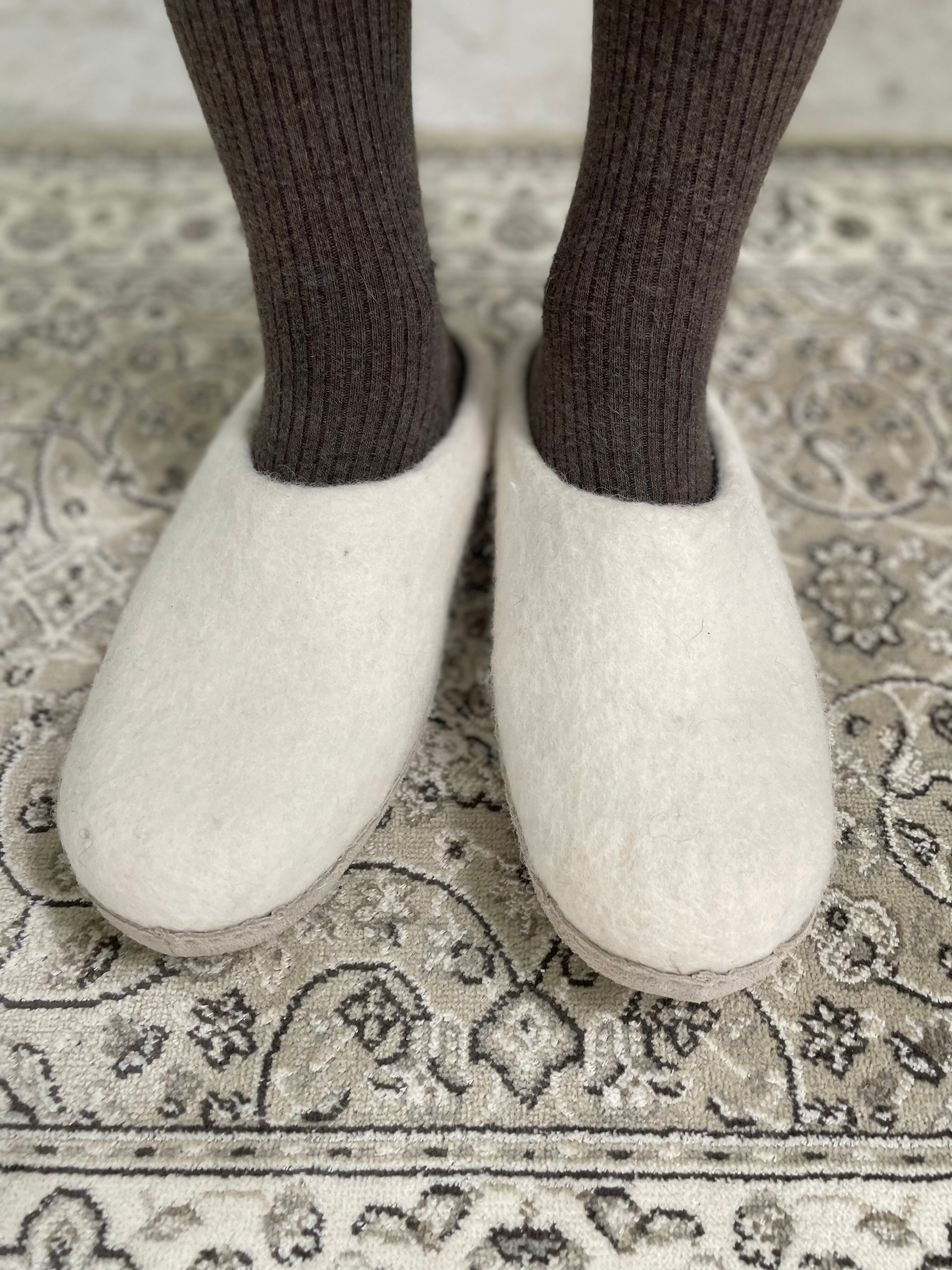 新作 羊毛/フェルトスリッパ(ホワイト) S