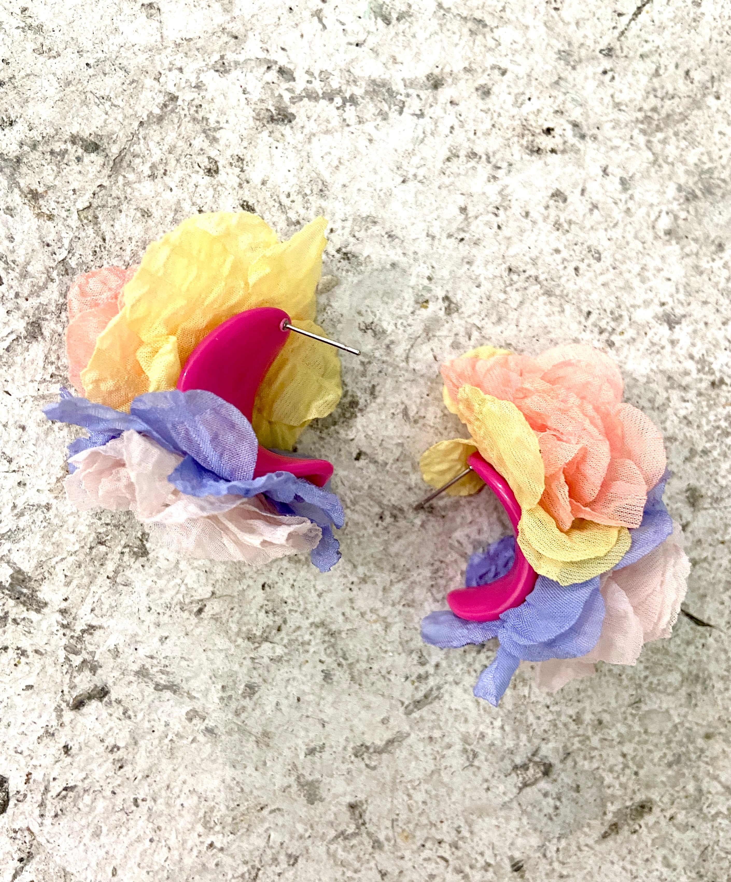 花びらのようなふんわりとした素材のピアス。