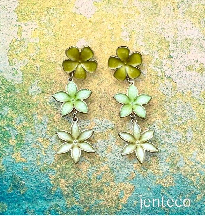 違う種類のお花が連なっているピアス。